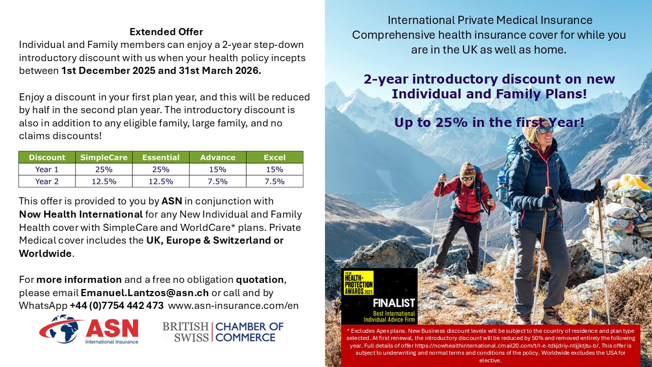 For more information and a free no obligation quotation, please email Emanuel.Lantzos@asn.ch or call and by WhatsApp +44 (0)7754 442 473 www.asn-insurance.com/en