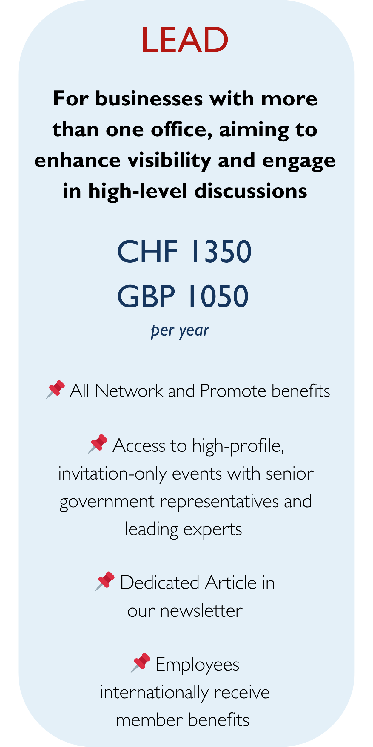 Elevate your brand, enhance your market presence, and gain strategic business insights. Join a vibrant network for all industries and nationalities with business interests across the UK and Switzerland.